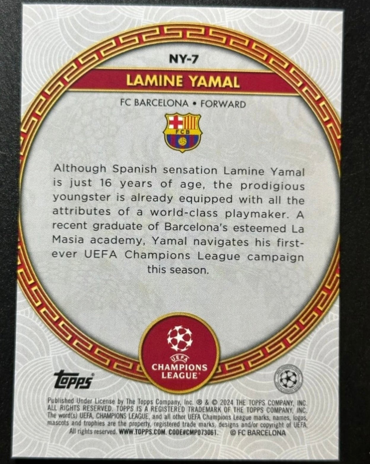 Lamine Yamal Rookie RC 2023-24 Topps UCL Chinese New Year Jade RARE #NY-7